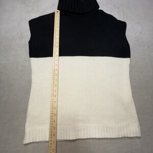 Ann Taylor Sleeveless Sweater Large Black Cream Merino Wool Cashmere Color Block