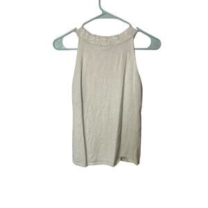 Ann Taylor Sleeveless Sweater Small Ivory Pearl Neckline Party Tank Blouse EUC