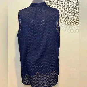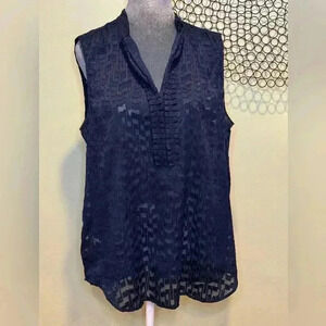 Ann Taylor - Sleeveless see through pattern shirt navy blue - Size Large