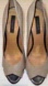 ANN TAYLOR WOMENS TAN LEATHER PEEP TOE SLIP ON BLACK STILETTO HEELS SHOES SZ 9M
