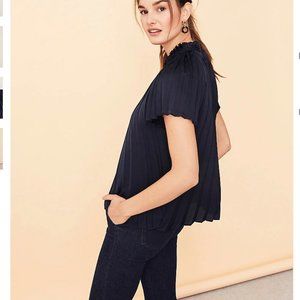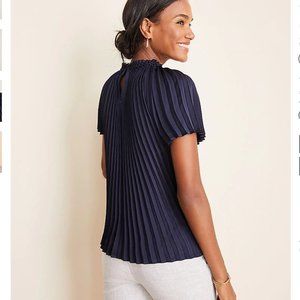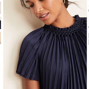 Ann Taylor Smocked Neck Pleated Top-navy/Night Sky