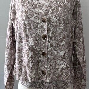 Ann Taylor Snakeskin Print Short Sleeve Sweater with V-Neck Cardigan Set Small