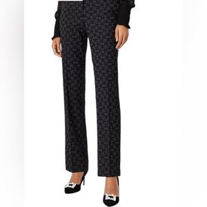 Ann Taylor Sophia straight leg pant black linked jacquard curvy fit. Mid rise. Made of polyester, rayon, & spandex. Just dry cleaned. Gorgeous. Euc