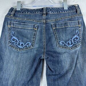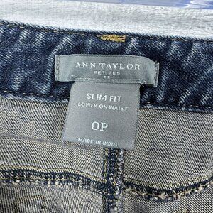 Ann Taylor Straight Jeans Slim Fit Lower On Waist Embroidered Back Women 0P Blue