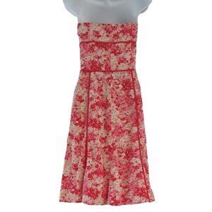 Ann Taylor Strapless Floral Dress Pink Size 2 Bow Lined Side Zipper Fit Flare