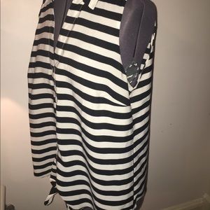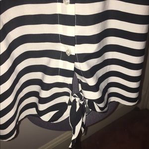 Ann Taylor tank top. Black and white stripe. Button down front with tie on the bottom. Collared neck. Super cute and only worn a couple times so in great condition! Size large.