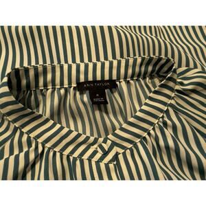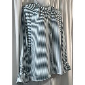 Ann Taylor Stripe Flare Sleeve Button Up Blouse Teal White M Chic 79-67
