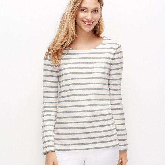 Ann Taylor Stripe Shoulder-Zip Cotton Tee $54 NWT