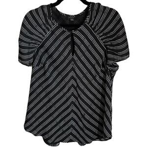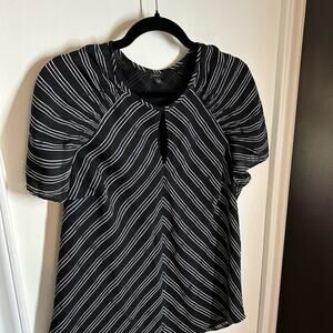 Ann Taylor Stripe Smocked Sleeve Top Black White Size Large