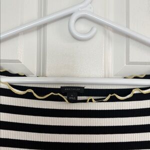 Ann Taylor Striped Black & White Top with Ruffled Edges in Yellow Contrast. EUC