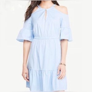 Ann Taylor Striped Cold Shoulder Shirt Dress