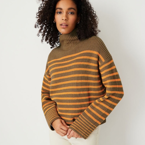 Ann Taylor Striped Mock Neck Long Sleeve Sweater in color Spiced Taupe or Orange and Brown