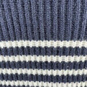 Ann Taylor Striped Wool Cashmere Sweater Size L Navy Blue Off White