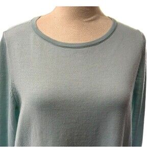 Ann Taylor Sweater Blue Merino Wool Knit Button Back Blouse Long Sleeve…