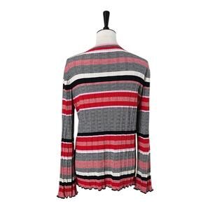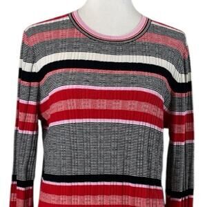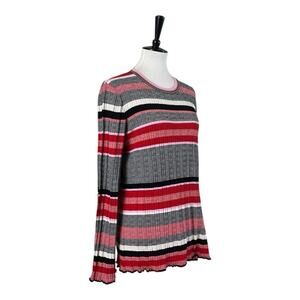 Ann Taylor Sweater Crew Neck Flare Sleeve Black Pink Red Stripe Women Size XL