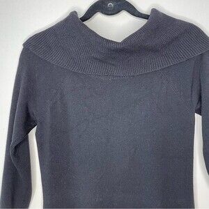 Ann Taylor Dress Black Extra Fine Merino Wool Blend Sweater Ribbed Cowl Neck