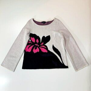 Ann Taylor Sweater Knit Floral Wool Bell Sleeve Black Barbie Pink Medium Grey