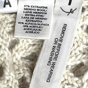Ann Taylor Sweater L Ivory Open-Knit Top Extra Fine Merino Wool Alpaca Eyelet