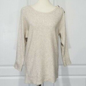 Ann Taylor Sweater M Lambswool Tan Natural Scoop Neck Knit