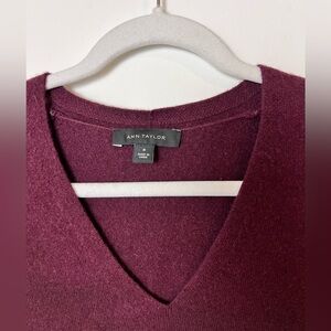 Ann Taylor Sweater Medium Burgundy Knit Merino Wool Blend Long Sleeves V-Neck