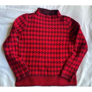 Ann Taylor Sweater Mock Neck Knit Houndstooth Red Small Holiday
