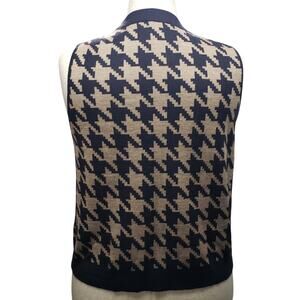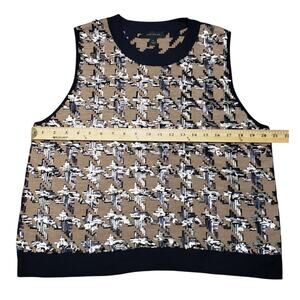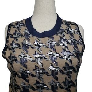 Ann Taylor Sweater Vest Size XL Sequined Houndstooth Knit Navy Beige Sleeveless