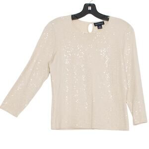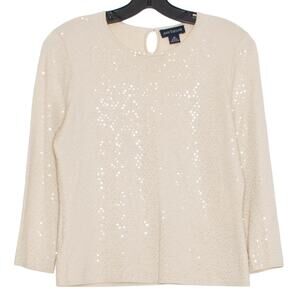 Ann Taylor Sweater Vintage Silk Sequin Minimalist Quiet Luxury Cream Size Medium