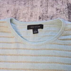 Ann Taylor Sweater Womens Small Blue Silver Striped Crewneck Pullover Lightweight