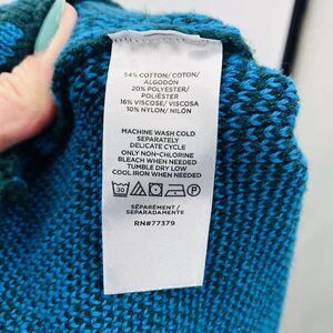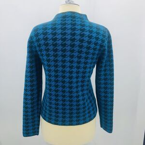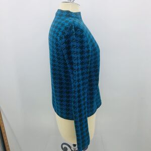 Ann Taylor Sweater Women’s Small Houndstooth Mock Neck Teal & Green Cotton Blend