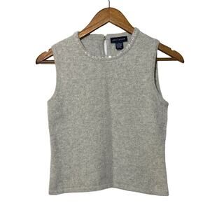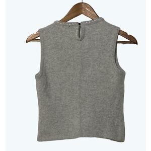 This Ann Taylor sweater in size XS is a stylish addition to any wardrobe. The sleeveless design with a round neckline makes it perfect for layering or wearing on its own. The sweater is made from a soft blend of lambswool and angora, ensuring comfort and warmth. The embellished neckline adds a touch of elegance to the grey color, making it suitable for both casual and formal occasions.