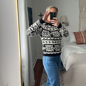 Ann‎ Taylor Sweater Womens Small Black White Fair Isle Mock Neck