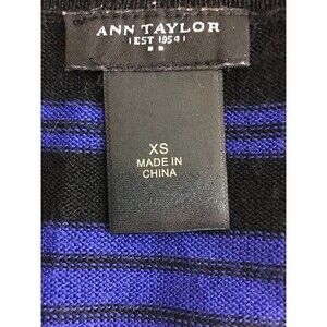 Ann Taylor Sweater XS Black Royal Blue Color Block Stripe Slouchy Wool Bl Tunic