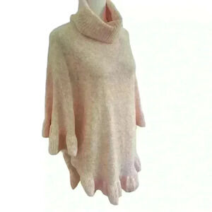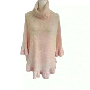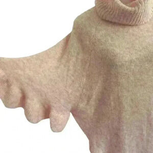 Ann Taylor Sweater/Poncho Turtleneck Flutter Sleeves Size M/L Pale Pink Fall