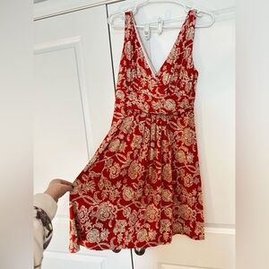 Ann Taylor Swing Dress Medium M | Orange Tan floral Flowy Trapeze Casual EUC