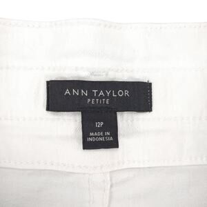 Ann Taylor Sz 12P White Jean Denim Short Mini Skirt, High Rise 3-Button Coastal