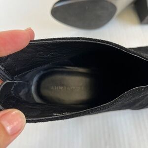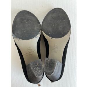 Ann Taylor Sz 7.5 Black Suede Leather Booties Black Heel Boots Back Zip Closure