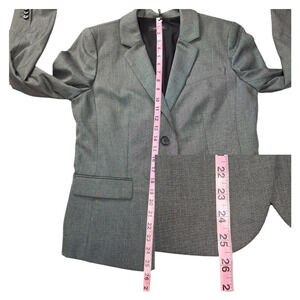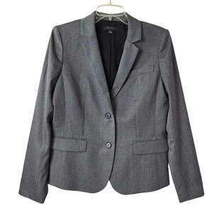 Ann Taylor Sz 8 Sharkskin Iced Slate Gray Two-Button Lined Blazer Jacket Pockets