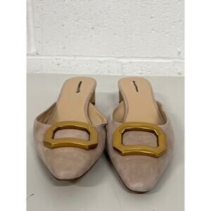 Ann Taylor Sz 9.5 Beige Suede Leather Gold Buckle Mule Low Heel Slip On Pumps