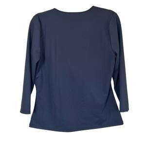 Ann Taylor Sz L Black Refined Stretch Wrap Top 3/4 Sleeve Fitted Feminine Office