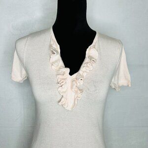 Ann Taylor Sz S Ruffled Front Pink Lightweight Cotton Short-Sleeve Shirt Top