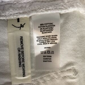 Skinny white jeans for the curvy Five pockets, zipper and taper legs White Waist 35” Inseam 29” Rise 9 1/2” Stretchy