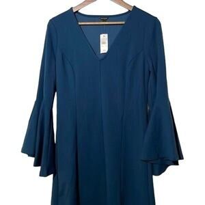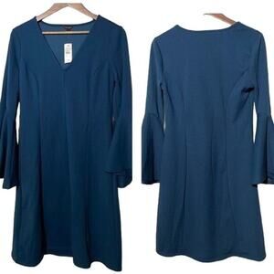 Ann Taylor Tall Small V-Neck Bell Sleeve Flare Dress Above Knee Blue NWT