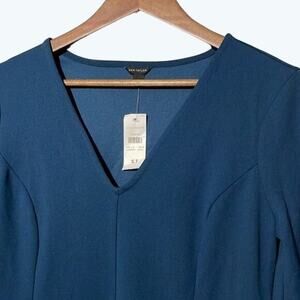 Elevate your wardrobe with this Ann Taylor Tall Small dress, designed with a flattering V-neckline and elegant flare bell sleeves that add modern drama to a classic silhouette. Perfect for work, special occasions, or elevated casual outings, this above-knee dress drapes beautifully and is tailored for taller frames. The sleek blue hue makes it versatile for all seasons—pair with heels and jewelry for events, or style with flats and a cardigan for polished daytime wear. Its clean lines and timeless appeal make it a wardrobe staple that balances sophistication with comfort.
