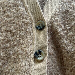 Ann Taylor Tan Button-Front Bouclé Cardigan