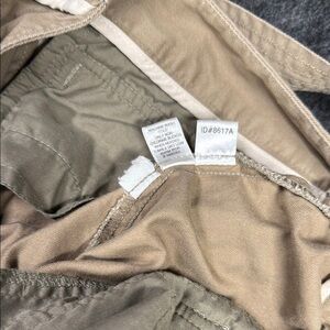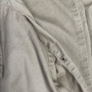 These Ann Taylor tan chinos boast a chic wide-leg silhouette and a cropped length, offering a modern twist on a classic style. Crafted from a comfortable cotton twill, they exude a casual elegance with their raw hem and timeless khaki hue. Perfect for adding a touch of sophistication to your everyday wardrobe. Small pin mark on left leg see pic