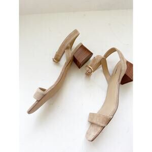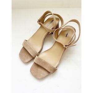 Ann Taylor Tan Suede Block Heel Sandals Gold Buckle - 10