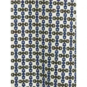 Ann Taylor XXL White round neck top with beige and blue chain design, short sleeve
