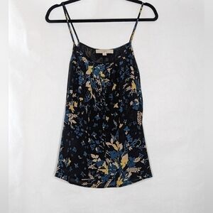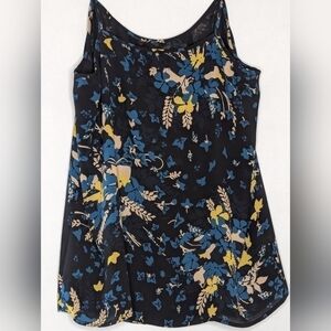 Ann Taylor Loft Tank Top Medium Navy Blue Yellow Floral Cami Sleeveless Flowy *FLAW