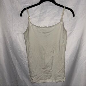 Ann Taylor Tank Top Sheer Trim Spaghetti Straps Fitted Y2K Balletcore Cream