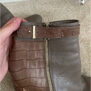 Ann Taylor Taupe Brown Leather Alligator Textured Heeled Booties 7.5